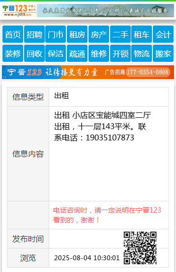 免责声明:本栏目信息由网友自行发布,太原生活网不承担任何责任!提高警惕,谨防诈骗!做推广、做信息置顶!请加太原生活网客服微信:taiyuanwangzhan