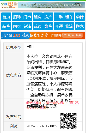 本人位于文兴路明珠小区有单间出租,日租月租均可。