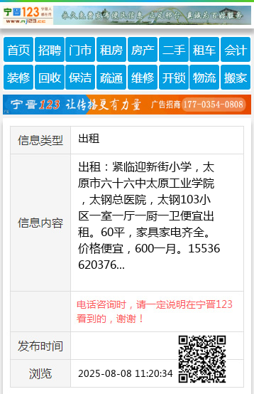 出租:紧临迎新街小学,太原市六十六中