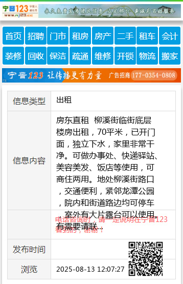 房东直租 柳溪街临街底层楼房出租,70平米,已开门面,独立下水,家里非常干净。