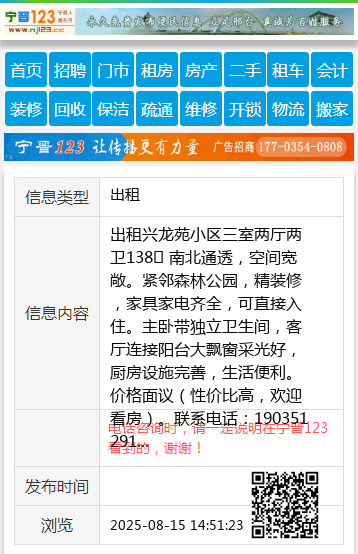 出租兴龙苑小区三室两厅两卫138㎡ 南北通透,空间宽敞。