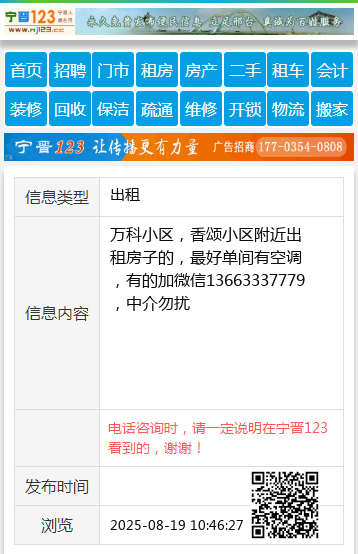 万科小区,香颂小区附近出租房子的,最好单间有空调,有的加微信13663337779,中介勿扰 【电话咨询时,请一定说明在太原生活网看到的,谢谢!】 |
