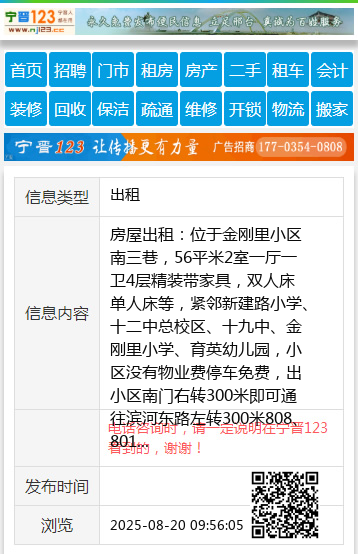 房屋出租:位于金刚里小区南三巷,56平米2室一厅一卫4层