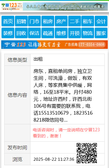 集中供暖,网络,16至18平米。月付480元,地址许西村,许西北街106号
