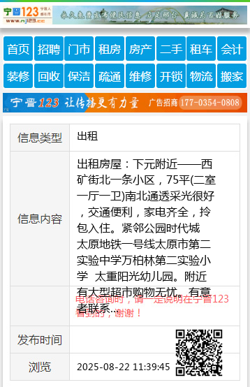 有意者联系13099056526。 【电话咨询时,请一定说明在太原生活网看到的,谢谢!】 |