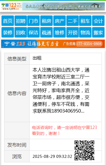 山大二院附近有房出租,有意者电话联系13503517637
