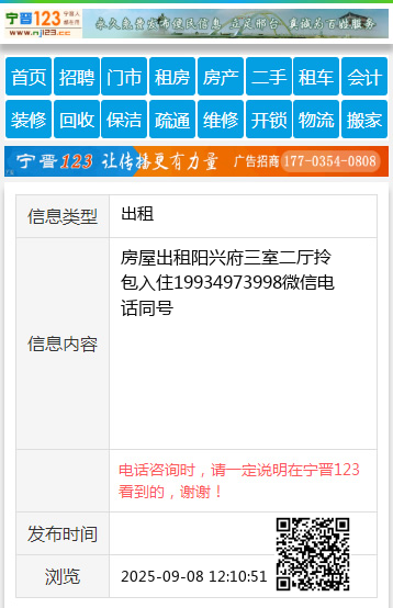 房屋出租 阳兴府三室二厅拎包入住19934973998微信电话同号