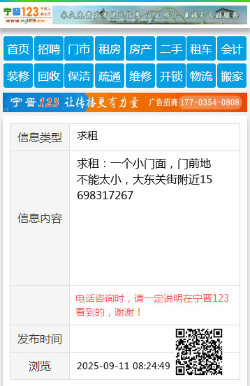 求租:一个小门面,门前地不能太小,大东关街附近15698317267