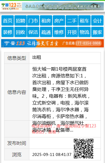 恒大城一期1号楼两居室首次出租,房源信息如下: