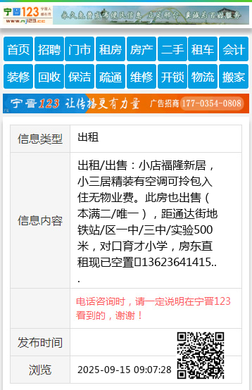 出租/出售:小店福隆新居,小三居精装有空调可拎包入住无物业费。此房也出售(本满二/唯一),距通达街地铁站/区一中/三中/实验500米,对口育才小学,房东直租现已空置☎13623641415 【电话咨询时,请一定说明在太原生活网看到的,谢谢!】 |