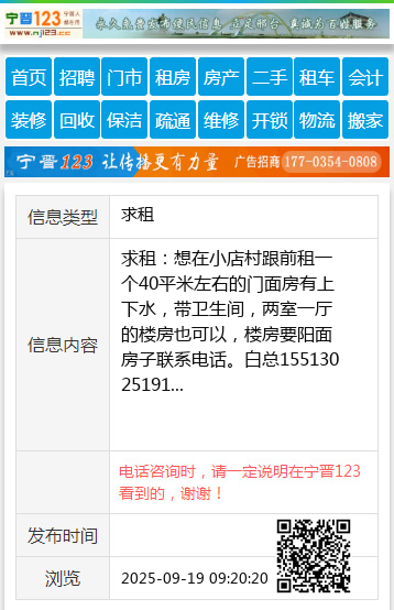 求租:想在小店村跟前租一个40平米左右的门面房